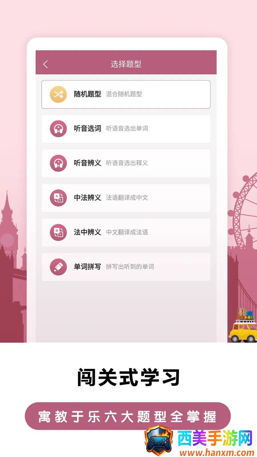 莱特法语学习背单词是一款针对法语词汇学习的移动应用,运用艾宾浩斯记忆曲线规划学习与复习,提供系统内容,多题型练习与场景化学习助用户高效记词,满足不同阶段学习者巩固法语词汇需求。