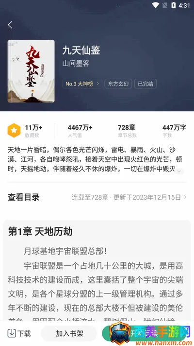 1. 海量免费小说随意看:涵盖各种题材风格,武侠、玄幻、科幻、都市言情等应有尽有,满足不同读者需求。