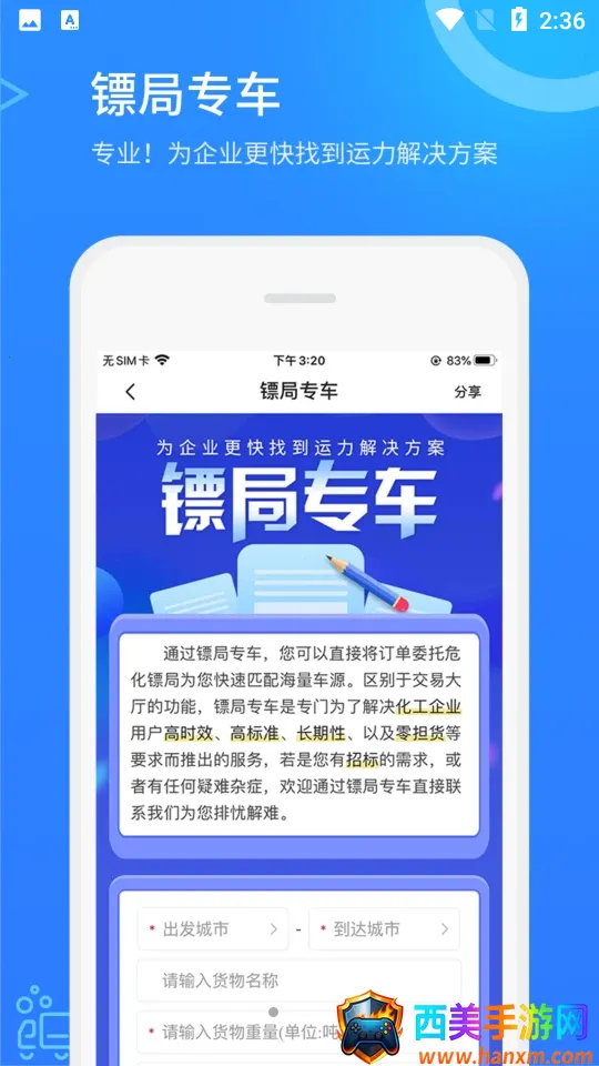 危化镖局2026官方正版是一款专为危险品物流打造的综合性服务平台,能实现车货匹配,提供行业资讯、衍生服务等。每日更新超15万票货源车源,支持多种运输模式,还有多项实用功能及安全保障机制。