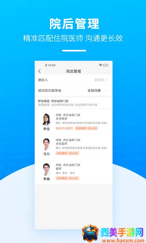 这是一款便捷的医疗服务平台。入驻资深医师专家,支持提前挂号,省去排队时间,在线一对一咨询,方便医患交流。提供视频复诊、图文随访、在线支付、药品配送、查询报告等服务。复诊患者可手机预约复诊、挂号、开药、做检查,免去到院排队困扰。支持语音和视频双向沟通,会诊可全程录制,每天有专业医生服务。还能查看医院信息,便捷预约挂号,提高就医效率,优化就诊流程,提升医患体验。