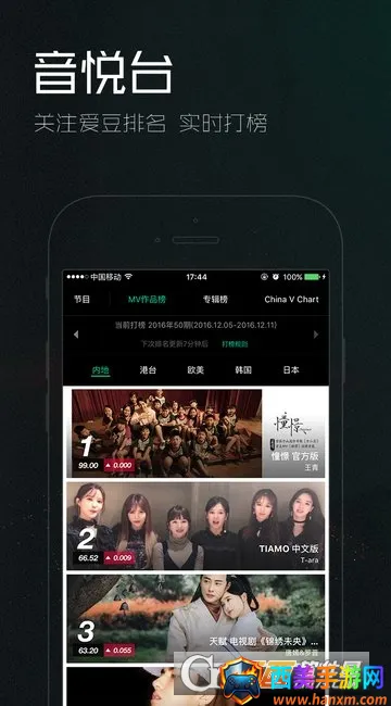 2. 支持手机打榜,可浏览V榜上榜歌曲,还能影响MV在榜单的成绩,让用户参与感更强。