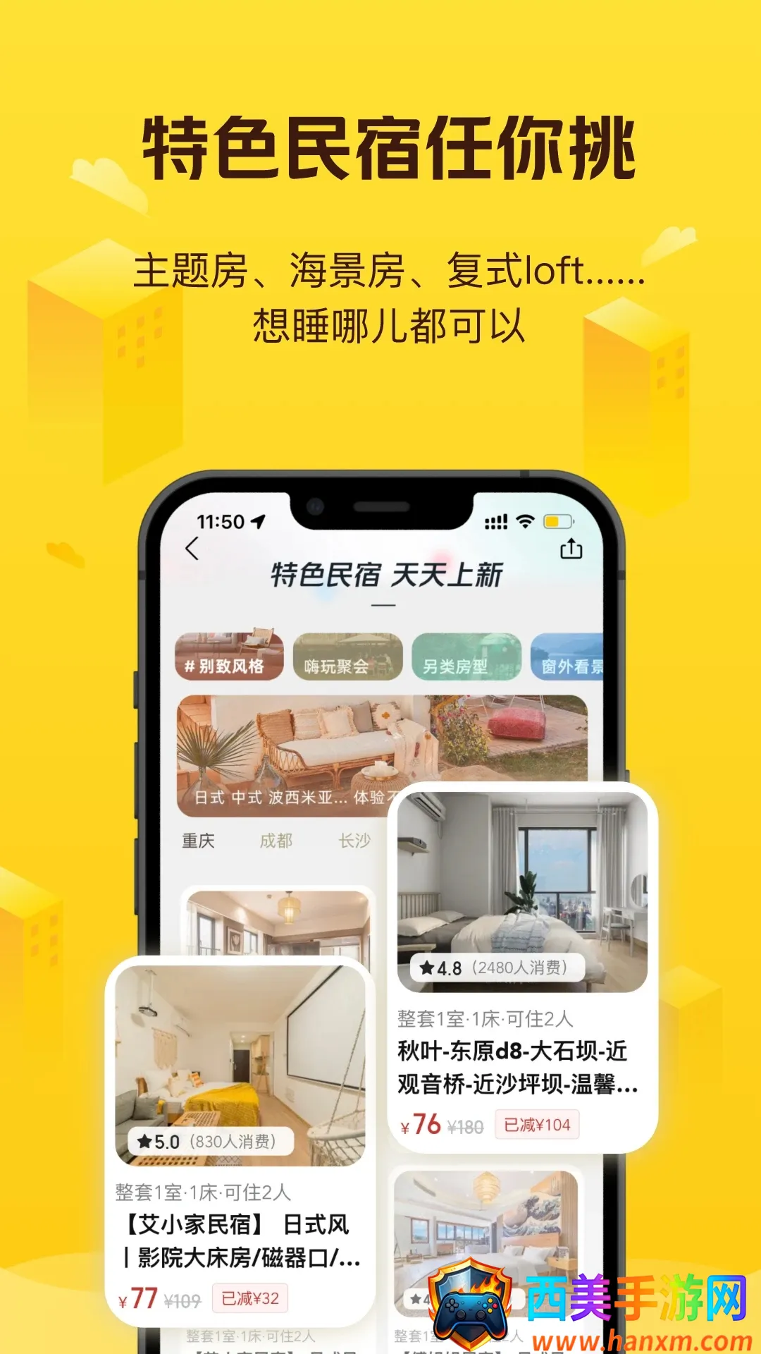 个性化体验:提供民宿、公寓、别墅等多种住宿选择,还有树屋、房车等新奇网红民宿,满足多样需求。