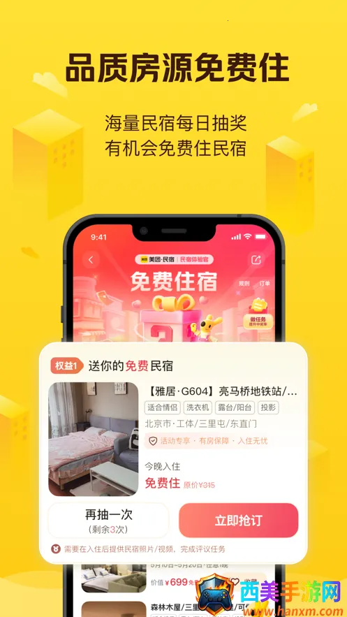 美团民宿是原美团榛果民宿改名而来的手机软件,能预订各类民宿。提供多样化房源,有十几种类型,可体验当地特色。支持用户与房东沟通,房东能发布房源,平台保障住宿安全,还有千万用户好评。