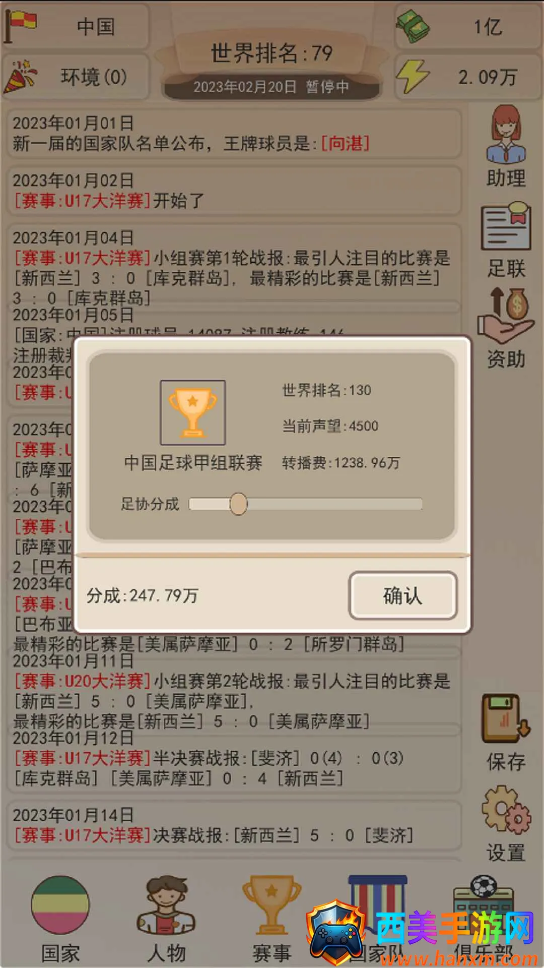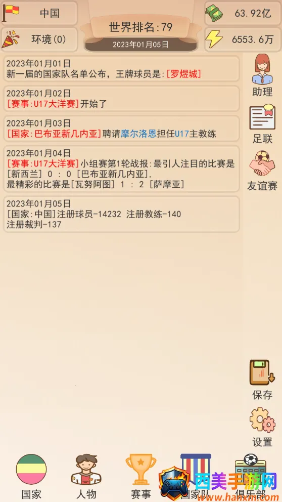 想知道如何在足协模拟器中大展拳脚?这里有超实用攻略!进入游戏后选空白栏位开启征程。游戏会不断刷新赛事和信息,据此规划发展路线。先提升足球环境,点击下方国家进入升级界面。点击人物可培养球员,属性随机提升。身为足协主席,签约球员能获资金与声望。等级够了就能参与各种联赛。这游戏玩法丰富,有球员、俱乐部与赛事系统。放置经营玩法易上手,考验决策水平。还有自动保存功能,可一键手动保存。能帮你轻松打造冠军球队,体验足球经营乐趣,从培养队员到带队冲击世界杯,在这文字模拟世界里,享受足球竞技与经营双重精彩,快来试试吧!