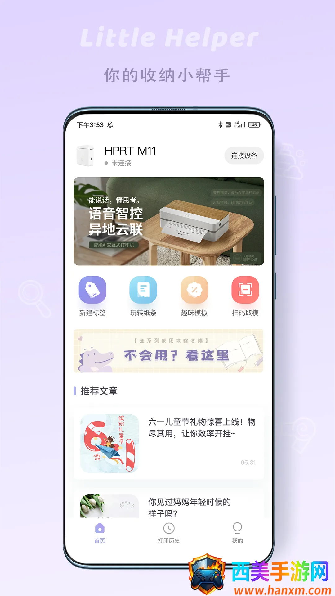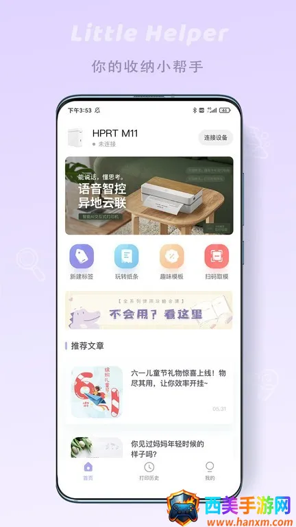 它的优势众多。**多款机型汇集**,能辅助大众完成画面互动,不管家里有几台汉印设备,都能自动识别型号并匹配,切换无需重新设置。**海量素材丰富**,且素材库持续更新,每次打开都有新内容,还有很多现成模板和图案,可自由搭配小图标、线条、二维码等,比普通标签机功能强大太多。还支持**远程控制**,连接wifi或蓝牙就能远程打印,操作简易。能满足各种家居生活打印需求,带来丰富打印数据互动,让生活更有序便捷。