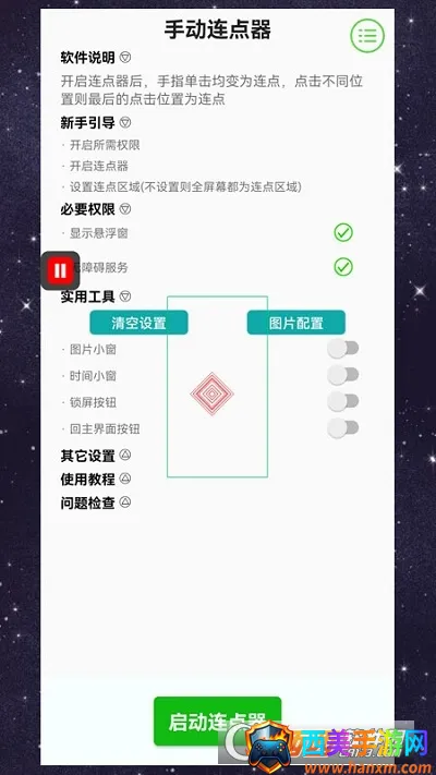 手动连点器是基于安卓辅助功能的免ROOT模拟点击屏幕工具型APP。能自定义连点区域、频率与次数,还附带多种小工具。可用于游戏、自动化测试等,操作灵活,有多点模拟等功能,不断更新修复问题。