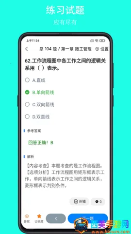 专为建筑工程领域打造,优势显著。有丰富题库资源,涵盖各专业知识点,满足不同需求。界面简洁操作便捷,适合各层次建工从业者。能记录练习位置与模拟考试历史,让用户了解学习进展和刷题进度。可标记已会试题,节省学习时间。还支持搜索试题、笔记评论、上传题库、错题库复习及收藏重点难点试题等,助建工从业者高效备考,打下坚实基础,提升考试通过率。