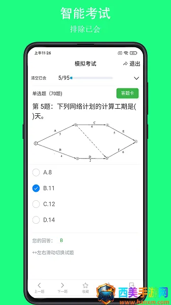 可可试卷是一款专为建筑工程领域打造的备考软件。它为建筑从业者提供了丰富的题库资源,涵盖众多专业知识点,适用地区广泛,包括全国多个省市。其优势显著,界面简洁直观,操作便捷,适合各层次建工从业者。具有练习位置记录功能,能让用户清晰掌握刷题进度;模拟考试历史记录可助用户了解学习进展;还能标记已会试题,节省学习时间。此外,还有模拟考试、刷题练习、错题库复习等多种功能,海量考试题库每日更新,能帮助用户轻松掌握重点知识,提升考试通过率,是建筑工程领域备考的得力助手。