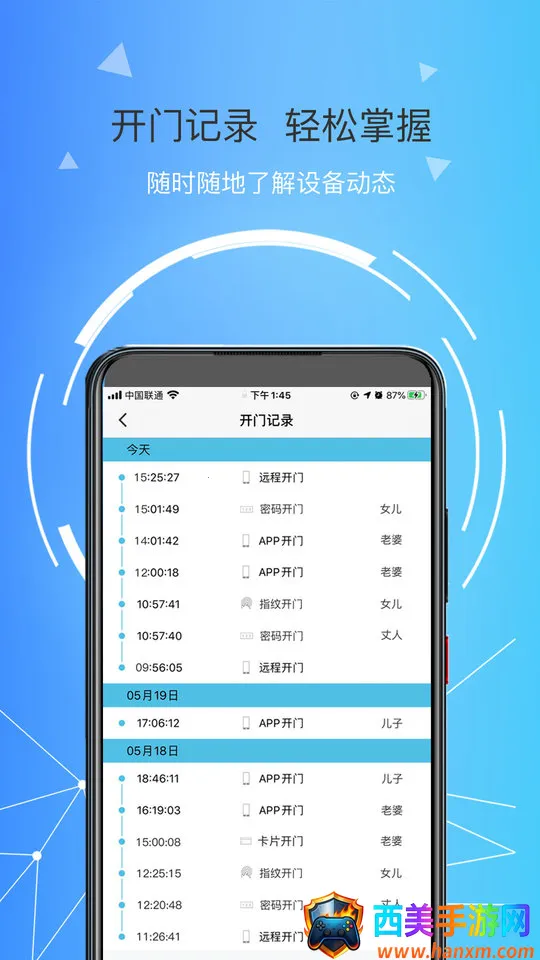 琨山智能app可以帮助用户使用智能锁,还会自动记录智能门锁的开启数据信息,方便随时查阅。用户还可以通过智能门锁清晰地看到门口的人员,确保您的人身和生活安全。