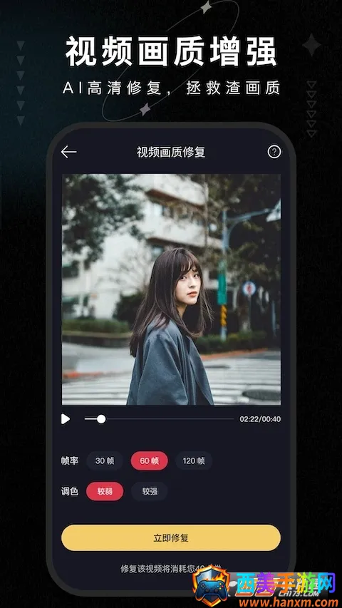 画质修复大师挺好用的!它是专业手机修图工具,依托先进AI照片识别技术,能快速修复老旧模糊破损照片,让珍贵回忆清晰如初。还有智能着色选项,给黑白照片自然添彩。操作简单,修图小白也能轻松上手,有详细教程。它功能超丰富,有翻拍复原、颜色恢复等多种修图功能,满足爱美人士需求。通过AI算法自动识别翻拍,让老旧照片焕发光彩。能一键提升照片清晰度,还提供多种自拍处理工具,像滤镜、美颜、瘦身等,拍出美美的自拍照。内置海量素材,贴纸、边框、背景等美化工具让自拍照更丰富。多种预设滤镜可按需选择。而且无需Root权限就能进行游戏画质调节,内置绘画工具,涂鸦、素描、插画轻松完成。所有功能免费,几步操作就能让照片视频变清晰,自拍照变绚丽,很值得一试!