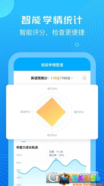 E 听说教师为教师带来诸多便利。它简化教学流程,提供丰富资源,助教师了解学生进度与需求,提升教学质量。其智能评测技术确保作业评分准确,还有大量同步练习和测试资源。能一站式解决教学各方面问题,如布置作业、组织考试、获取学生反馈等。通过分析班级表现生成报告,帮教师调整授课计划。无论是日常教学管理还是学生进步跟踪,都表现出色,让教学更高效。