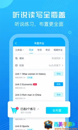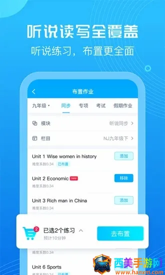 4. 资源丰富:拥有完备的单元同步、阶段测试、专项训练、综合模拟等多种作业资源,涵盖各种类型的作业素材,满足多样化教学需求。