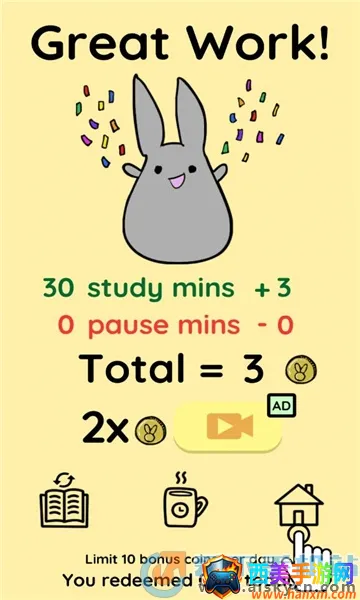 1. 加入游戏元素,装扮兔子的家或者喂食都需要金币来购买物品,当你在集中注意力时也是在赚取金币。在专注过程中能收获额外乐趣与收益。