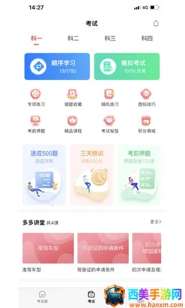 1. 全真题库:严格依教学大纲和考试要求,提供权威科目一、科目四理论题库,覆盖各类考点,助学员摸清题型,提升答题效率与质量,轻松通过理论考试。