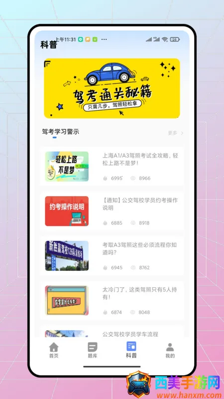 2. 全科目题目实时更新:确保练习内容符合最新考情,让学员练习随心所欲,紧跟驾考动态。