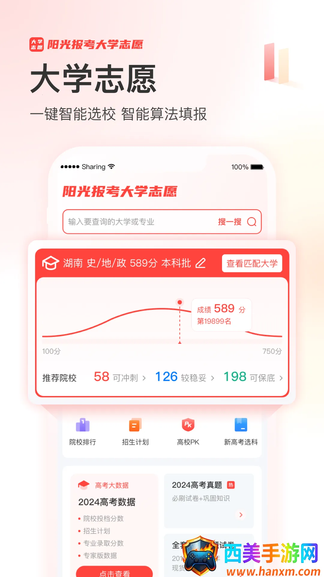 阳光高考网是一款备受信赖的高考智能志愿填报APP,已帮助累计数千万用户精准填报志愿。它凭借尖端的人工智能技术与丰富的大数据分析能力,提供全面的高考志愿填报及招录数据,信息更新迅速。专为2026年高考志愿填报政策量身定制,能借助智能算法为考生量身定制合理建议,助力规划未来方向。聚合2900余所高校资料,历年大学录取数据全面公开。还能全面掌握重点高校招生负责人视频解读自主招生等各类招生政策,提供升学指导。支持全国考试多种填报模式,新老高考不同模式全覆盖,一键智能报考,全面服务广大考生。是高考志愿填报的得力助手。