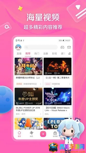 3. 涵盖7000多个兴趣圈层,形成了多元文化社区,能让用户在此追番、关注喜欢的up主,还能学习交流娱乐。