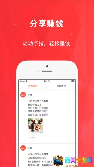 惠购网是一款超棒的网购返利软件。它能让你在购物时省下不少钱呢!不管是淘宝、天猫,还是京东、当当等 500 多家电商平台,在惠购网都能轻松实现一站式购买。这里精选全网人气宝贝,返利高达 50%,该省的一分钱都不会少。常去的商城一触即达,搜宝贝、查返利都很简单。而且宝贝降价还会提醒,随时随地都能拿返利。每天签到还送集分宝,邀请好友使用最高奖励 30 元/人,邀请越多奖金越多。关于惠购网充值的钱能否退回,一般来说,若充值后未消费或按其退款规则操作,是有可能退回来的。比如因误充等合理情况,联系客服说明,按流程提供相关信息,就有机会退款。具体可查看其官方规定或咨询客服了解详情,让你购物无忧,放心省钱。