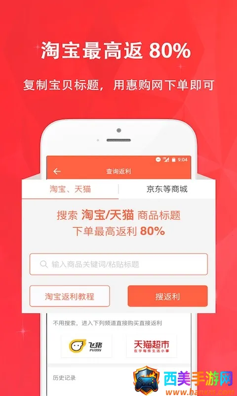 返利超丰厚:支持淘宝、天猫、京东等 600 多家网上商城返利,返利高达 50%,淘宝返利比例更是高达 80%,全网返利最高,让你购物省钱超划算。