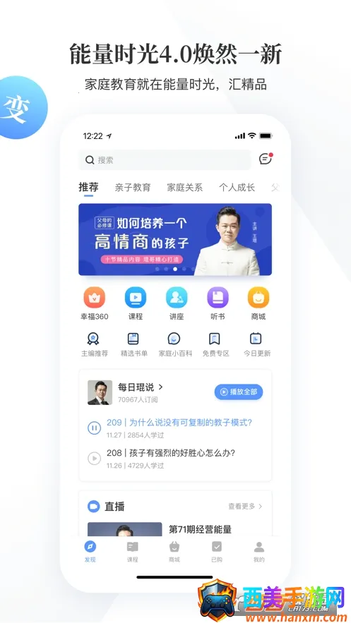 能量时光APP是一款超棒的在线学习平台。它能解决你在家庭教育、个人成长、职业技巧等各方面的知识需求。不管是生活里遇到的难题,还是想提升自己,在这里都能找到答案。