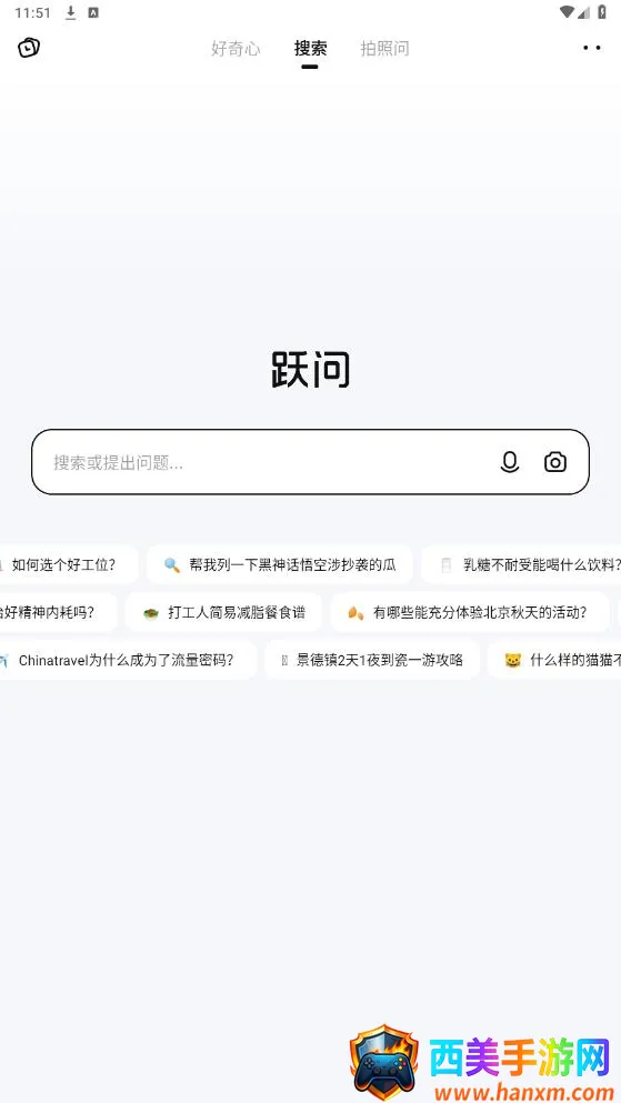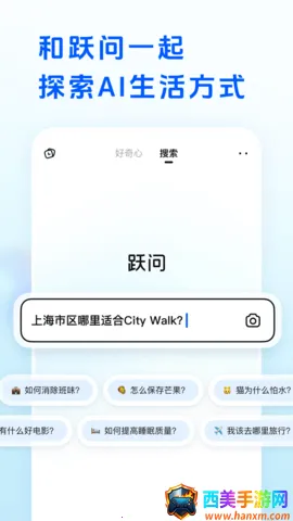 跃问是一款出色的智能应用。它能全方位智能问答,无论是文字、图片还是语音提问,都能迅速响应,全网搜索给出准确答案。创新的拍照识图技术超厉害,一拍即识拓展知识。对长篇文档能快速阅读分析,提炼关键信息。而且多端无缝同步,在不同设备上都能接续使用。它适用于多种场景,提供个性化服务。比如在旅游时能一键制定攻略,还能当赛博导游。在好奇心板块有各种有趣内容。无论是日常解惑还是工作学习助力,跃问都表现出色,是个值得拥有的好帮手。