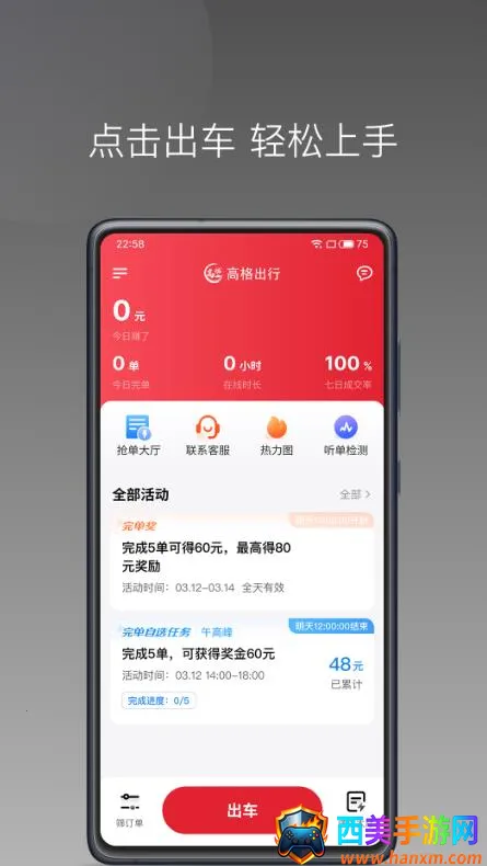 高格出行车主端 2026 最新版本是专为司机打造的出行服务应用。有智能派单、简洁界面,功能丰富。能自由选接单条件,还有抢单大厅等。具备多种软件特色与亮点,操作指南清晰,还有多项优势保障司机权益与收益。