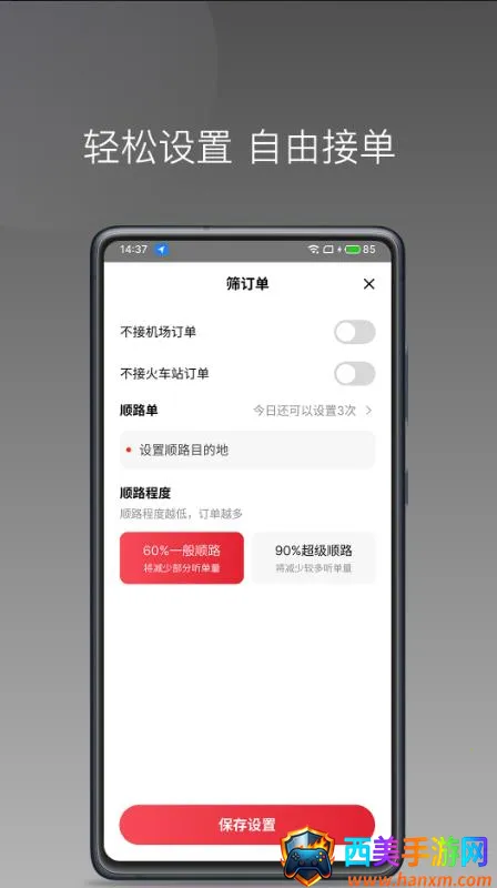 3. 丰富订单与多样功能:每天实时更新最新订单信息,货源充足。还有抢单大厅、筛订单等功能,可自由选择接单条件,根据个人喜好定制行程,还能参与活动赢取额外奖励。