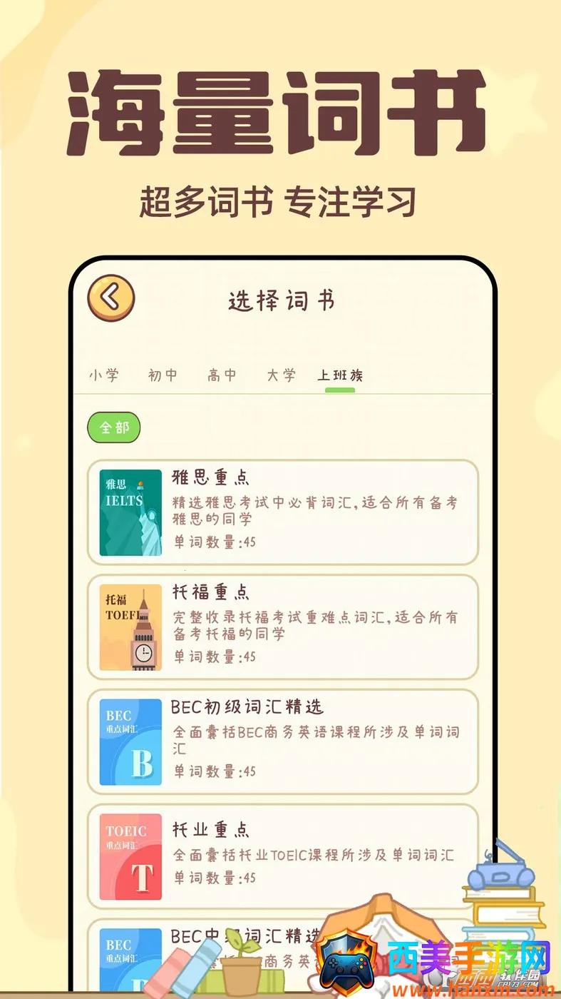 兔兔背单词在手机学习软件中表现出色。它能助力用户轻松提升英语知识,使用便捷。其涵盖丰富专业知识,从语法到词汇,从听力到阅读,全面提升英语能力。提供优质英文服务,随时随地可享功能。适合不同水平英语学习者,无论初、高手都能找到合适课程练习。软件让用户轻松掌握单词,丰富词汇量,拓展知识面。多种实用功能助快速上手,享受学习乐趣,还有免费资源帮记忆更多单词,提高英语水平。有了它,英语学习不再困难,是一款值得推荐的手机单词学习软件。