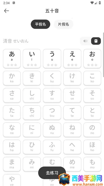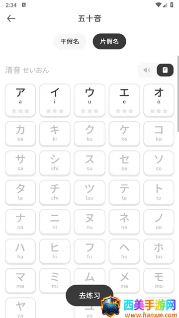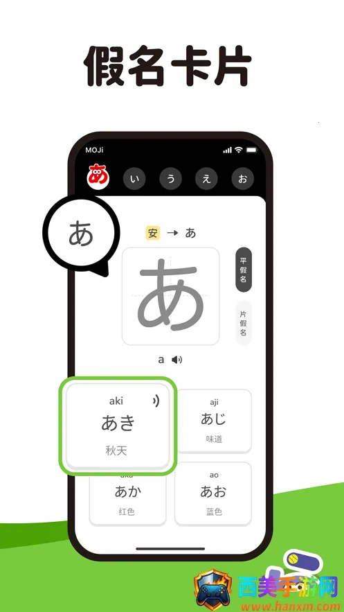 MOJiKana为用户打造了一站式日语学习服务。它展示了日语中的五十音图,提供假名卡片,让用户通过趣味方式学习日语单词,有效提高学习兴趣。用户能在线查看五十音图、假名卡,播放标准配音,还可通过问题库练习答题,查看成绩反馈,随时在线练习日语单词。其特色在于能查看日语50个声调基本内容,亮点是多维学习、有趣学习,适合零基础用户快速入门并提升日语水平,帮助用户从多个维度掌握日语知识,在有趣环境中学习,牢牢掌握日语发音,提高日语水平。