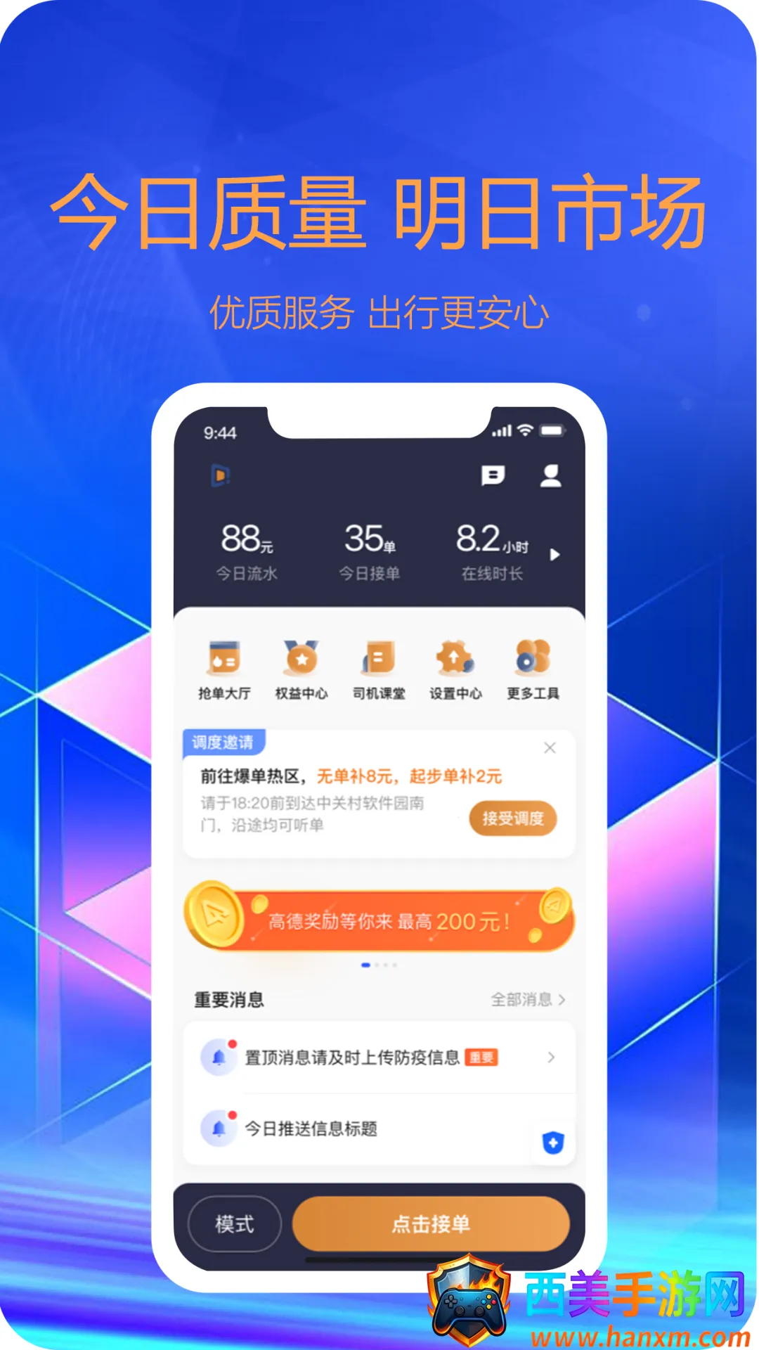 东潮出行司机端是深圳市东潮出行科技有限公司品牌,以高德地图为载体。为司机提供海量订单,规划合理路线,涵盖多种服务。有详细订单信息,可通讯、导航,还有多种实用功能,保障信息安全,提升接单效率。