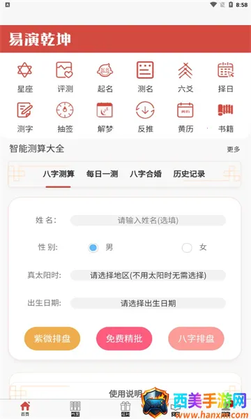 易演乾坤安卓版是提供八字测算、合婚、起名、测名等服务的平台,还有星座解析、天气预报等实用工具。免费体验多样功能,采用智能算法结合国学,为命理爱好者提供丰富服务与参考。