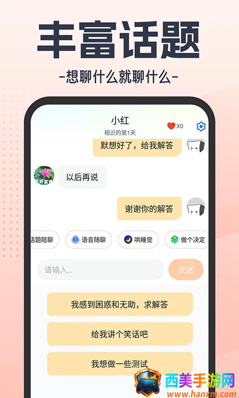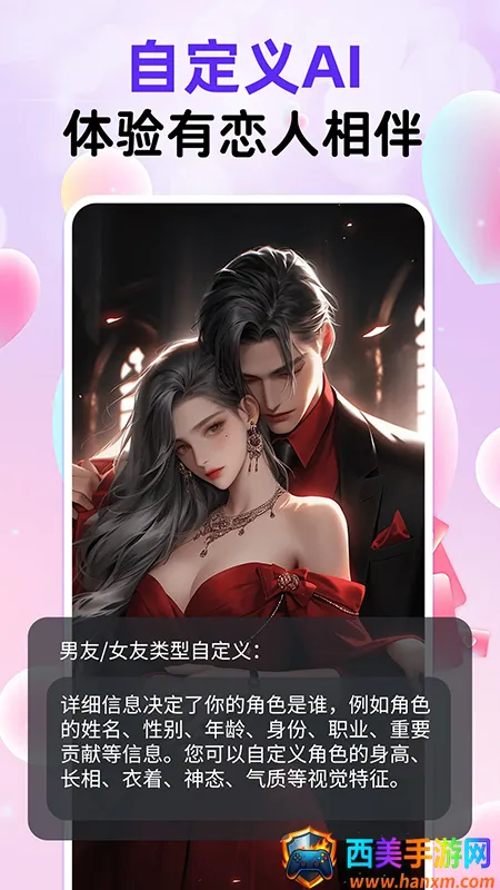 虚拟恋人AI聊天最新手机版提供AI人工智能聊天服务,能打造专属虚拟恋人,24小时陪伴。可自定义角色,多种聊天方式,还有丰富话题及精美头像资源,让聊天更有趣,享受贴心陪伴。