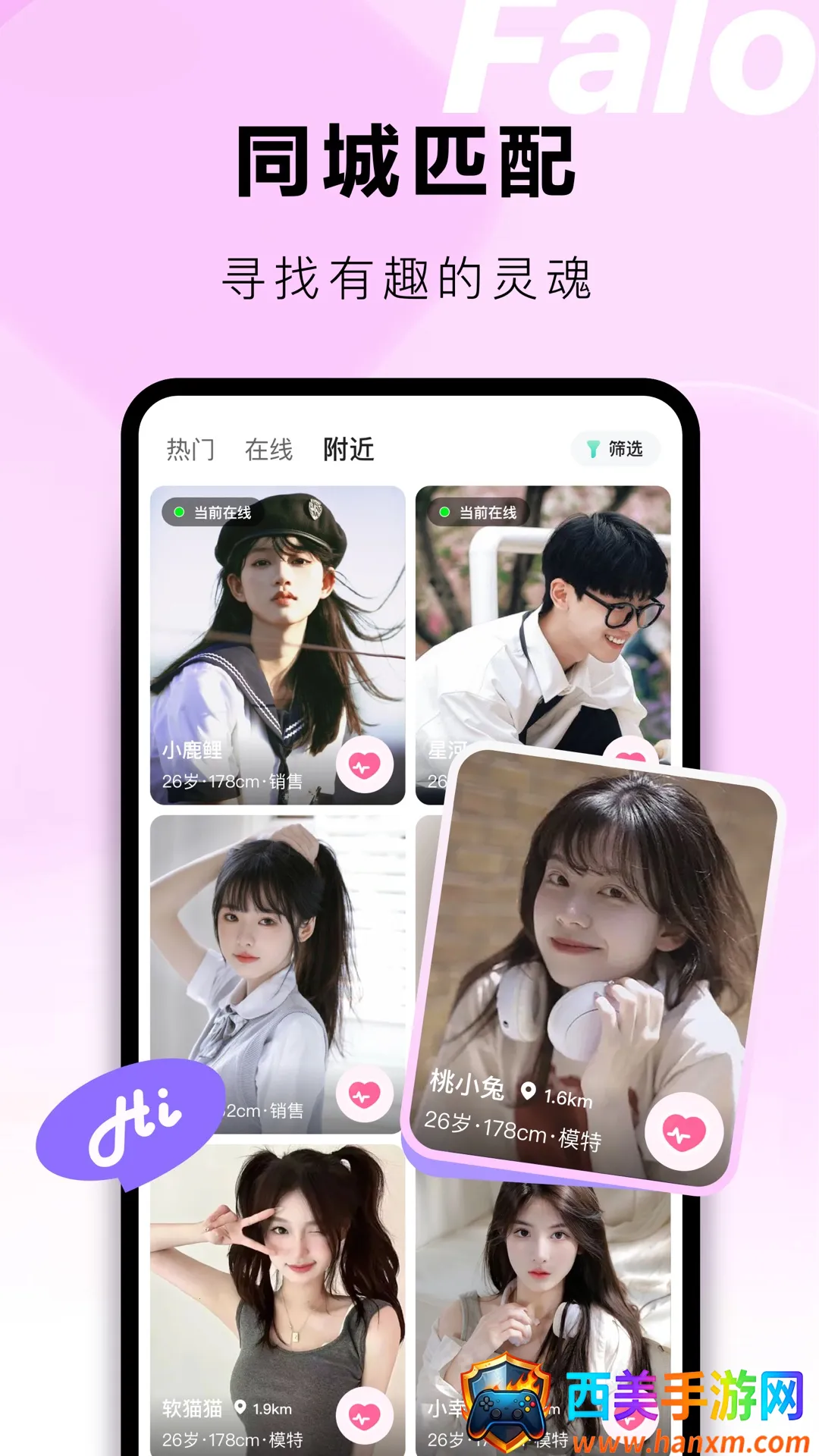 Falo2026是杭州拾珠电子商务有限公司旗下恋爱交友软件,人工审核确保真实,时尚匹配机制有趣,有情绪树洞、视频vlog等功能,支持同城交友、互动聊天,帮年轻人找喜欢的TA,享受精彩社交。