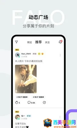 Falo 为年轻人打造时尚交友体验。人工审核,告别虚假欺骗,交友环境纯粹真实。独特匹配机制,动动手指随心匹配,自动推荐用户。能自定义添加个性标签选好友,还有动态设置,可发布图文或视频动态并互动。智能客服随时帮忙,还显示喜欢自己的用户,双向喜欢可私密聊天。一键关注喜欢的用户,查看其动态消息。在这里,轻松找到心仪对象深入了解,收获朋友知己,操作简单,功能好玩,模式多样,交友高效又有趣。