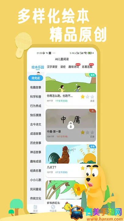 海量绘本,拓宽视野:上千本原创故事绘本,涵盖十大主题,趣味识字同时能拓宽孩子的文化视野。