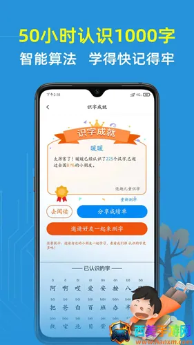 适趣儿童识字广受好评。它由专业公司制作发行,能依据孩子特点和学习进程精准推送原创内容,让孩子轻松识字。通过6大板块教学,拓宽孩子知识面。其采用AI智能算法,先测字后阅读,推送专属趣味故事,避免孩子因学习方式不当产生问题。授课方式转换为游戏娱乐,让孩子开心认字。软件提供多种方案,解决家长在孩子识字教育上的难题,如幼升小压力大、不会教没方法等。50小时认识基础1000字,进阶认识2000字,能有效帮助孩子开启自主阅读,是一款非常不错的儿童识字软件。