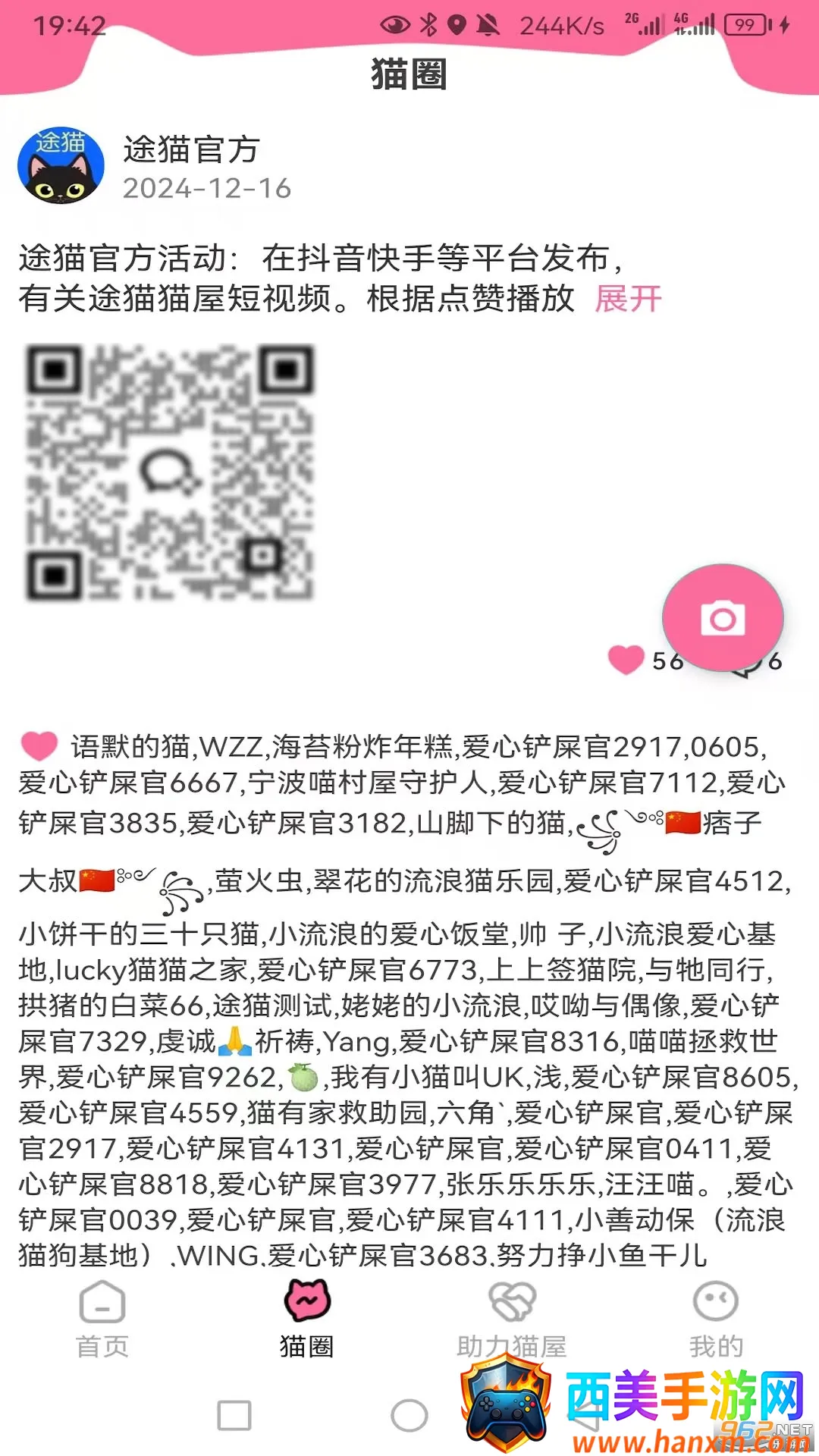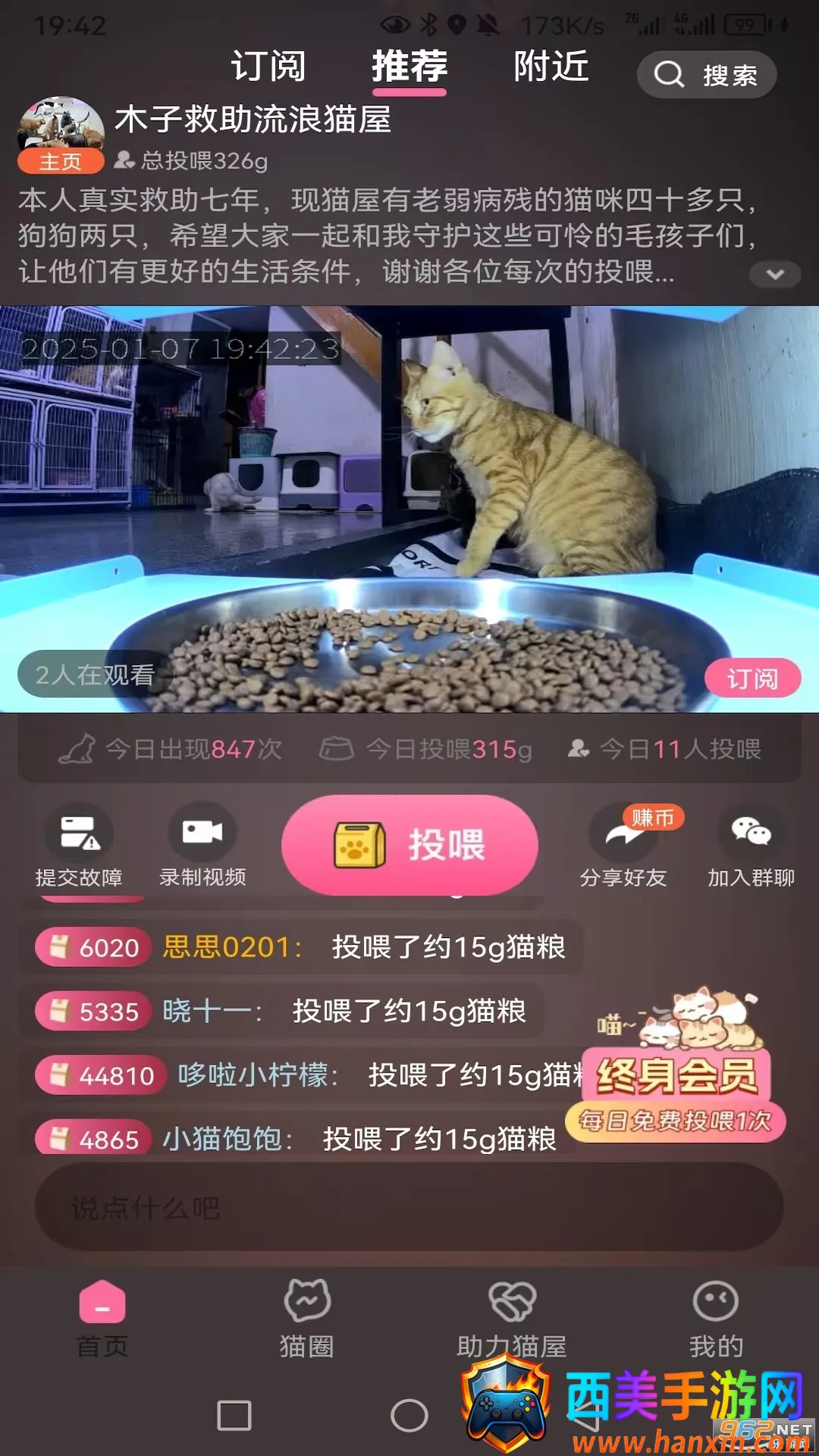 途猫专注流浪动物关爱,其猫友圈氛围浓厚,大家围绕猫猫相关积极交流。能远程投喂多种流浪动物,猫屋管理科学,保障正常运转。软件优势众多,在线观看清晰,远程投喂便捷,互动社区有趣,爱心记录可追溯。亮点突出,温暖便捷、真实互动、全民参与、科技向善。想为流浪动物献爱心的,不妨试试途猫,一起用行动传递关爱,让流浪动物感受温暖。