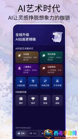 这款绘画创作工具优势显著。它结合先进AI生成算法,输入提示词就能将创意变现实。投入大量技术提升体验,高性能服务器保障处理速度,创作更轻松。简单文字描述就能创作,打破传统门槛,让更多人参与。特别支持中文输入,方便中文用户。无论是专业艺术家还是初学者,都能借助它充分发挥想象力,自由生成各种风格画作,专注于创意表达,享受高效创作过程,激发创作灵感与激情,轻松开启艺术创作之旅。