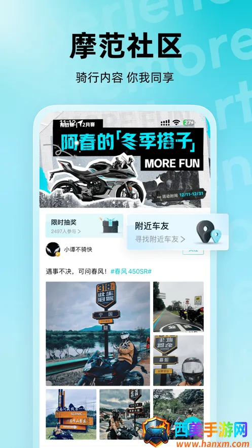 3. 摩范圈精彩互动:支持图文分享、视频分享、摩友互动及勋章激励等,打造优质摩托车社区。