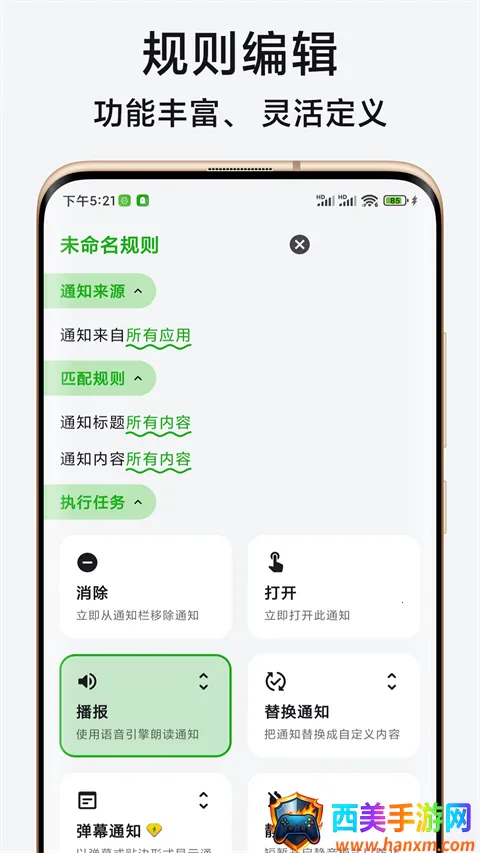 3. 强大的执行模式:拥有14种执行模式,如播报通知、替换铃声、短信回复等,满足多样需求。