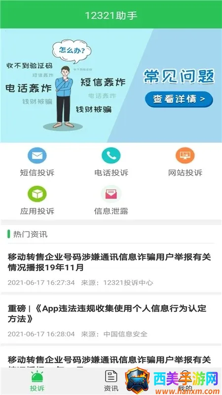 12321举报助手2026官方正版由中国互联网协会受工信部研发。可举报诈骗骚扰电话、垃圾短信及不良App,一键快速举报,自动读取过滤短信,简化程序,提供多类资讯,保障隐私,操作简单,多渠道反馈举报进展。
