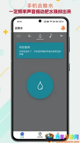 3.使用排水功能在工具页点击手机去水,通过声波振动排出听筒水分,注意保持音量适中避免损伤