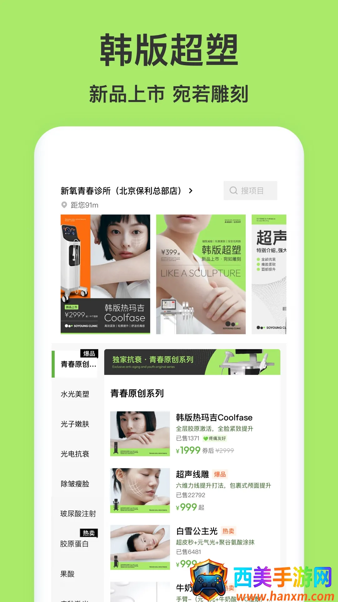 新氧青春提供一站式变美服务,涵盖医疗整体论自然美学及透明服务。严选同城优质机构,最新最热医美项目都在这里,选择无忧,安心变美。新氧医美电商平台标价透明,消费者可以通过项目机构PK功能在线比价,享受透明放心的消费环境。新氧青春诊所给予每一位用户完整且周到的服务,将你遇到的问题一一解决,同时还有许多的便捷服务可供使用哦。累积超过350万篇真人美丽日记,真实还原项目体验,帮助用户全面快速了解医生技术机构服务及项目效果。目前有超过1万名经过资质认证的医生在线,超过6千家正规医美机构入驻,为用户提供专业客观的医美信息与诊断建议。