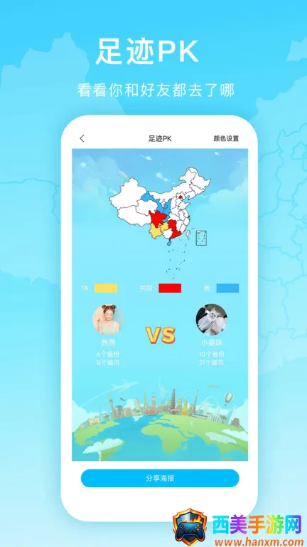 3. 便捷分享与保存:能轻松将足迹地图保存到手机,还可直接截取,并且能通过微博、微信等分享给好友,方便展示旅游经历。