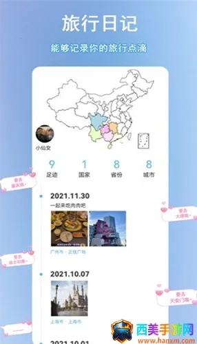 足迹地图助手是为旅游爱好者定制的手机软件,能一键生成旅游足迹地图,支持多语言,有足迹PK等特色功能。还具备航班动态等功能,操作简单,可导航、分享,能记录旅途,留下美好回忆。
