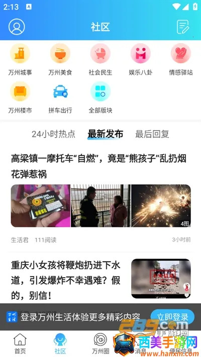 “重庆万州生活”类软件超实用!它能帮你轻松解决很多生活需求。功能超丰富,有搜索功能,能快速找到附近餐厅、商店和娱乐场所,规划出行超方便。生活服务板块涵盖家政维修、搬家等,一键预约就能享受便捷服务。还能随时获取万州最新新闻资讯,了解时事动态和文化活动。社区论坛能发布求助或二手交易信息,促进邻里互助。软件亮点多多,本地活动推荐按兴趣智能推送,不错过精彩瞬间;社区互动可分享生活点滴,增强归属感;优惠券专区能享本地商家独家优惠;实时交通信息助你避开拥堵选最佳路线。有了它,就像有了贴心小助手,让你轻松融入万州生活,享受便捷多彩的城市日常。