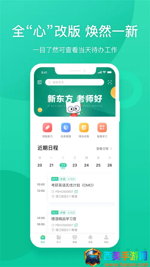 新东方教师端app是教师管理班级的得力助手。它能让教师轻松查看学生的任务提交情况、资料学习报告等,深入了解学员学习进展。有个性化学员档案,方便教师进行个性化辅导。学情反馈报告自动生成,便于跟踪学生成长轨迹。还能实时查看续班数据,任务批改支持语音、图片回复和涂鸦功能,十分灵活方便。通过它查课表、课时、学员、课程记录、教学反馈等,一站式工作查询,高效利用碎片化时间。能在线布置作业、查看完成情况、写评语,还能和家长互动沟通。这么多功能,能帮教师高效完成教学管理工作,提升教学质量。要是下载不了,可能是网络问题,比如没连接网络或者网络信号差,也可能是手机内存不足,导致无法安装。你可以检查下网络,清理下手机内存,再尝试下载。