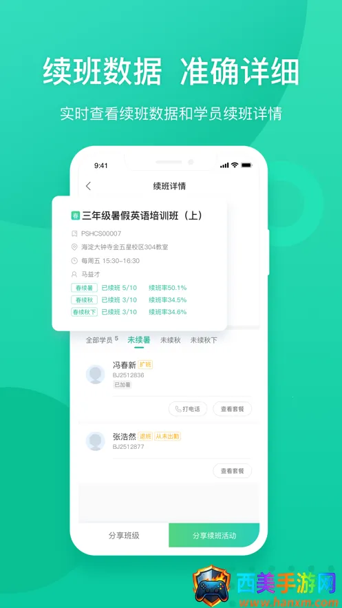 清晰呈现课程安排与续班数据,让教师轻松把控全局,了解班级整体情况,为教学决策提供有力依据。