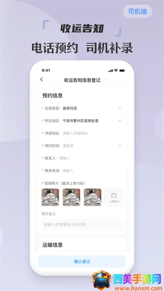 甬废清司机端是一款专为建筑垃圾回收司机打造的接单平台软件。它能让司机轻松获取更多订单,方便与货主在线沟通,查看订单状态。其优势显著,**高度智能化**,可快速接单并规划路线,实现精准垃圾收集;交互方式多样,能随时与平台沟通了解任务;解决了司机接单难题,避免繁琐调度。手机版特色突出,UI设计人性化,技术实力获认可,操作界面简洁,利于管理工作,提高清运效率与质量,还能协调车辆人员。资源共享免费公开,财务票据可统计分析,人员场所车辆能实时管理,是一款非常实用的软件。