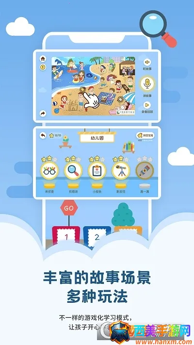 4. 多种学习场景趣味足,像逻辑排序情境表达小侦探游戏等,还有丰富的发音表达词汇学习内容,让孩子在玩中学。